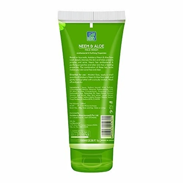 - BENEFITS OF ASTABERRY NEEM & ALOE FACE WASH:- Deeply cleanses the skin and helps reduce pimples and acne.