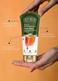 - BENEFITS: Lotus Botanicals Skin Brightening Face Wash neutralizes free radicals. 100% Natural Vitamin C helps combat hyperpigmentation and evens-out skin tone. It also purifies the skin to reveal healthy and glowing skin.