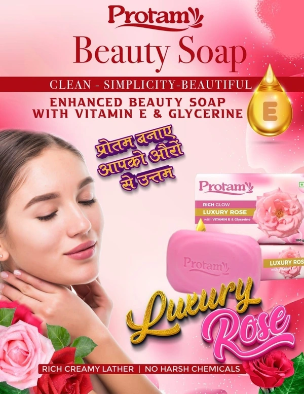 Protam Soap Luxury Rose - Enhanced Beauty Soap with Vitamin-E & Glycerine - 5 Pc